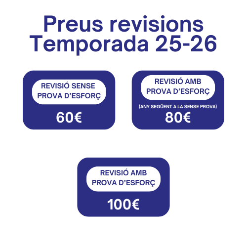 La pràctica esportiva de competició que realitzen als nostres nois i noies en els diferents equips és d’una gran exigència física. Per això les federacions catalanes demanen obligatòriament la superació d’un reconeixement mèdic previ per atorgar la fitxa corresponent per a la competició. En aquesta línia, la Secretaria General de l’Esport i el Departament de Salut de la Generalitat de Catalunya han establert unes recomanacions del contingut que han de tenir les revisions mèdiques en esportistes per detectar anticipadament situacions de risc per a la pràctica esportiva. Consulta la secció «SERVEIS MÈDICS»